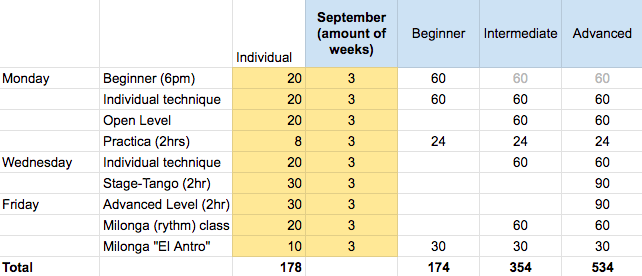 SCHEDULE2025 NOTE THAT THERE ARE NO CLASSES DURING THE BELGIAN SCHOOL HOLIDAYS (francophone), THE MILONGA “EL ANTRO” WILL CONTINUE!WEEKLY SCHEDULE 2025 Monday18-19 Beginners19-20 Individual20-21 Open Level21-23 Practica Wednesday19-20 Technique20-22 Stage-Tango (Advanced) Friday19-21 Advanced21-22 Milonga (rythm)22-open end MILONGA “El Antro”(Tango Party) Special Events PRICING Subscribe now to receive discounts up to 65% off!